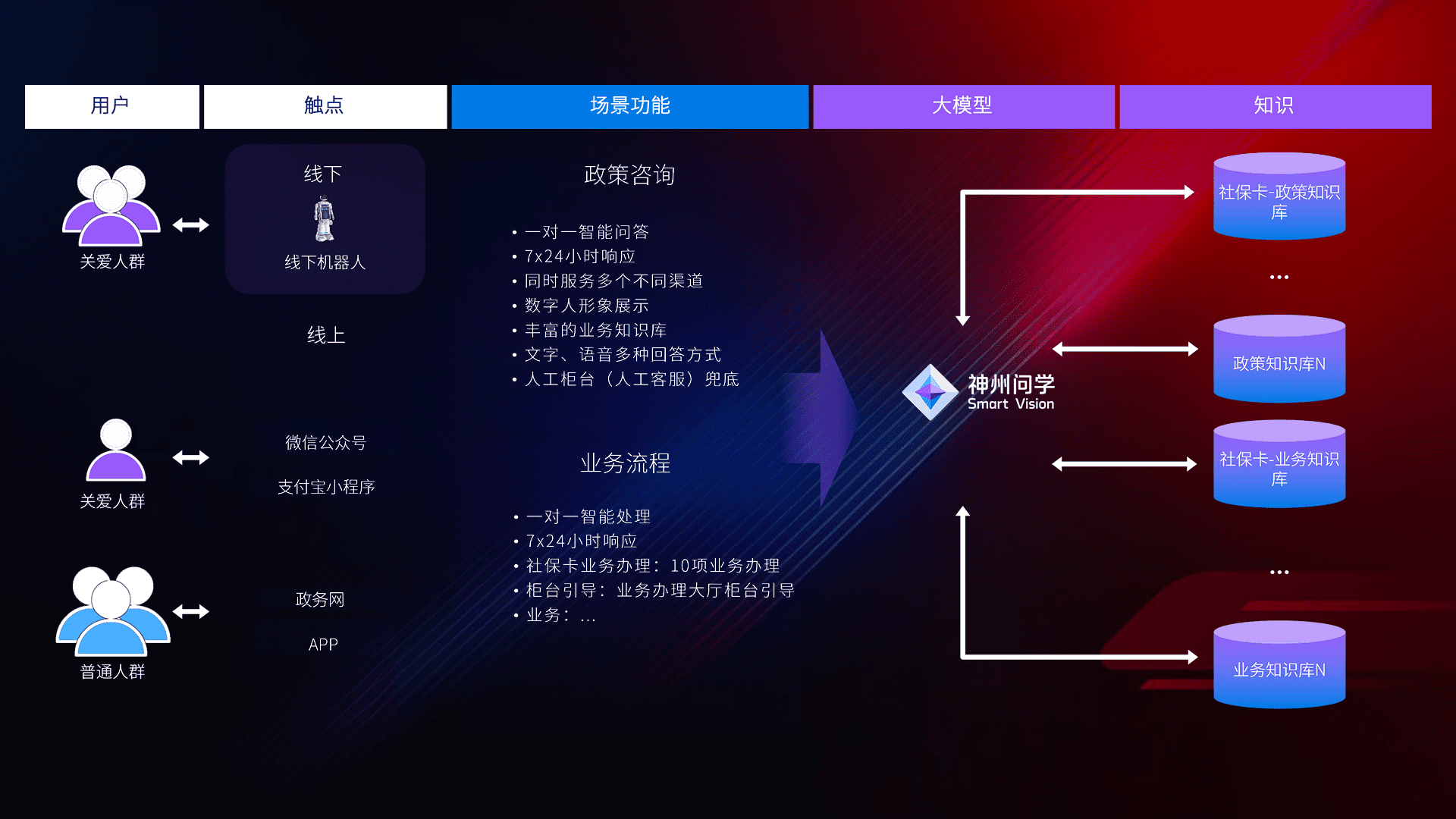 在服务大厅部署客服机器人,,,,在线上应用和小程序配置客服数字人,,724小时为群众解答常规问题,,,,客服机器人无法处理的,,,转现场人工处理。。